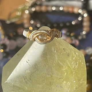 Handmade Citrine wrapped in 925 sterling silver and 14K gold fill (80/20) in a size 5 1/2. One of a kind!