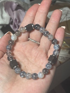 Handmade beautiful dragons vein agate, lava rock and hematite Bracelet. Men's size 8inches or women's size 7 inches available.